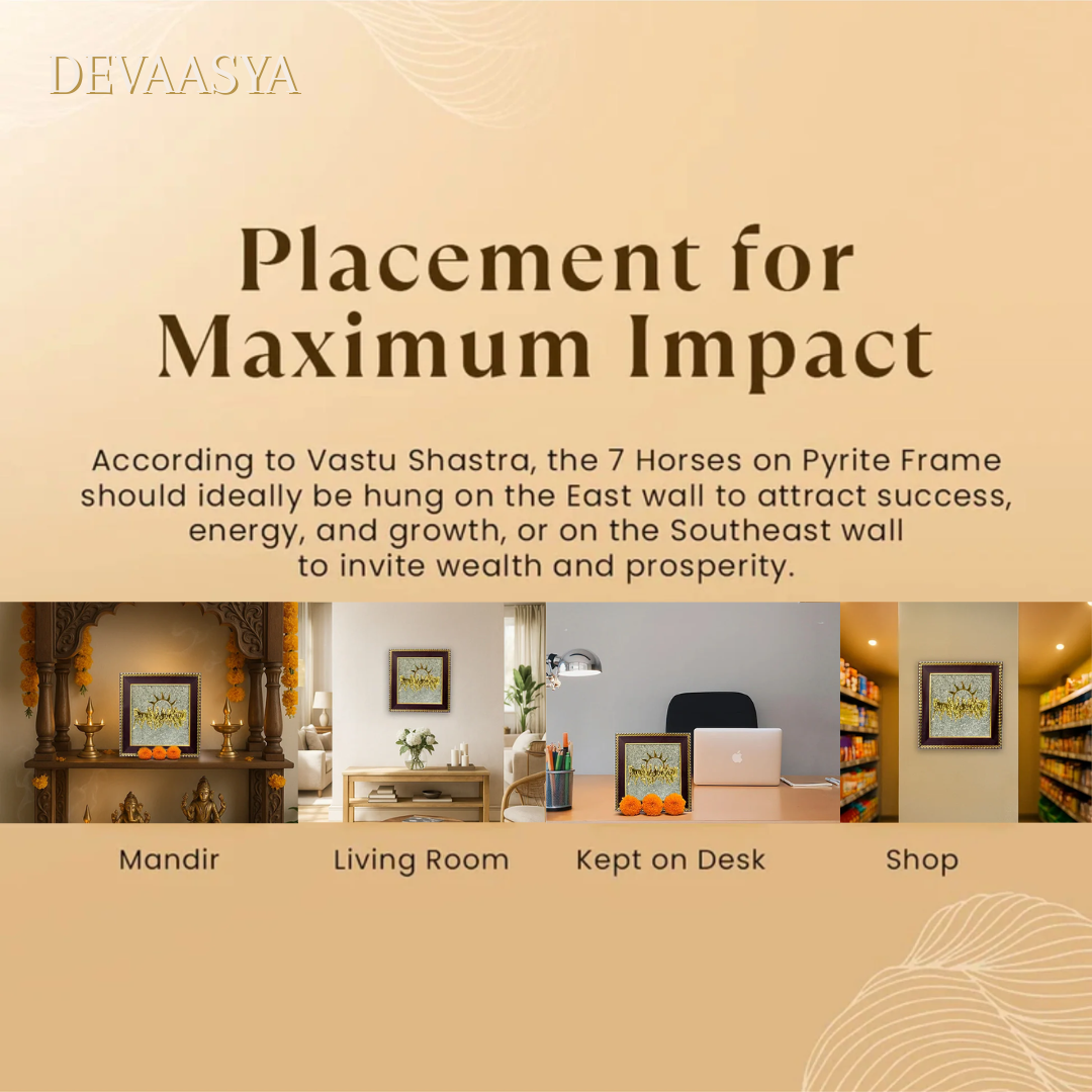Bring home the divine energy of success and prosperity with Devaasya’s 7 Horses on Raw Pyrite Frame — a magnificent fusion of spiritual symbolism and natural energy stone power.