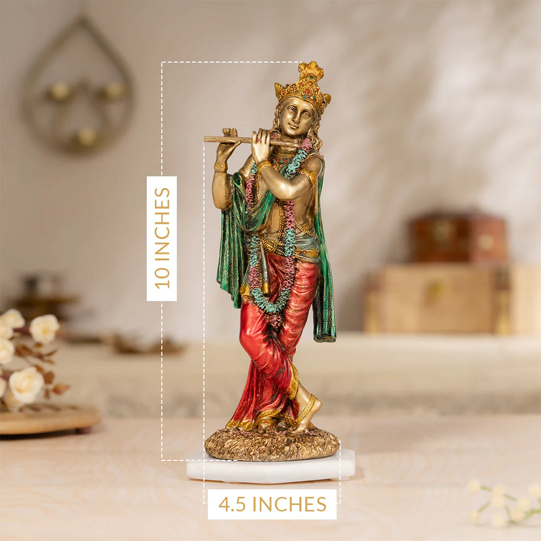Gold-Plated Flute Krishna Idol (3.5 Inch) with Antique Finish Flute Krishna Idol (10 Inch) – Divine Vastu Combo