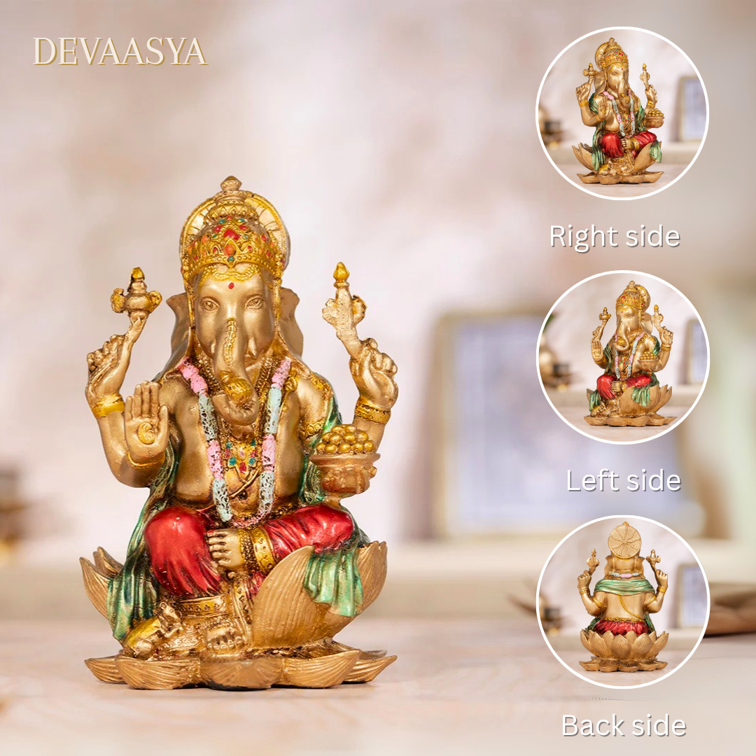 Bring the blessings of Lord Ganesha into your home with this beautifully handcrafted Lotus Seated Ganesha Idol. Depicted seated gracefully on a lotus, this idol symbolizes purity, wisdom, and spiritual growth. Perfect for home temples, offices, or as a gift to bring good fortune and harmony.